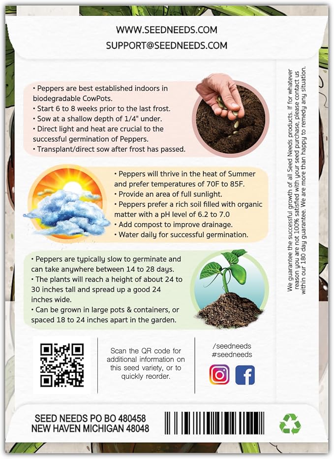 - QUANTITY - Seed packets by Seed Needs offer generous quantities. You can share with friends and family, or save your extra seeds until the next season, if properly stored.