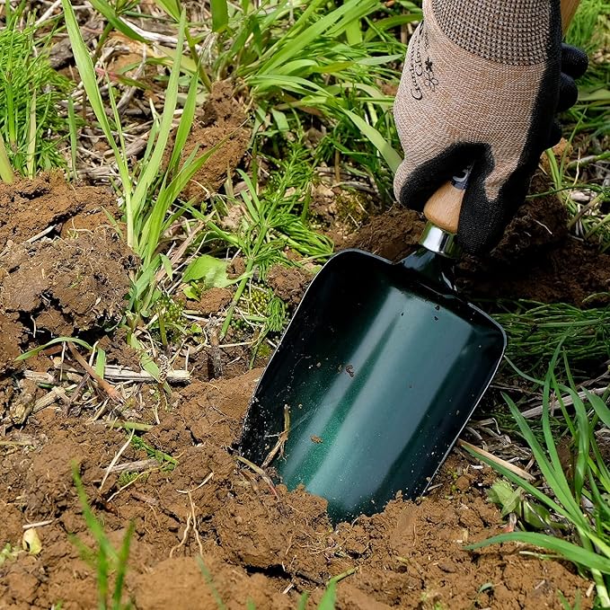 - [Large Soil Scoop Garden Tool] You can scoop a lot of soil at once with this wide handheld gardening shovel. It is an ideal gardening tool for soil replacement of planters and repotting work.