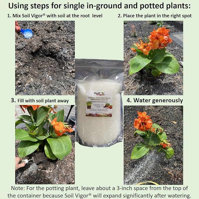- Potassium Polyacrylate is safe for plants: Vegetables, flower gardens, Lawns, potting plants, and indoor and outdoor plants.