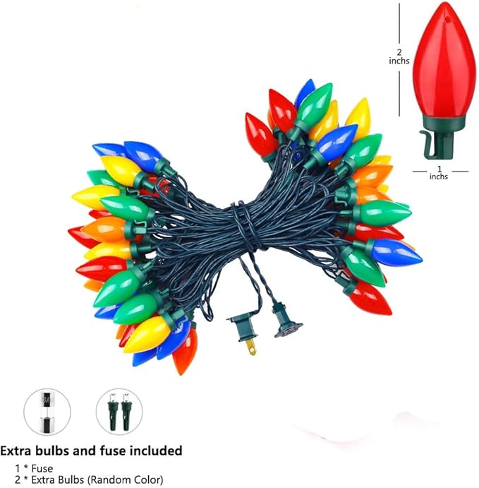Multi Color C9 Big Bulbs Classic Christmas Lights 50 LED 32ft Indoor Outdoor Home Yard Xmas Tree Decorations (Multi Color - 50LED)
