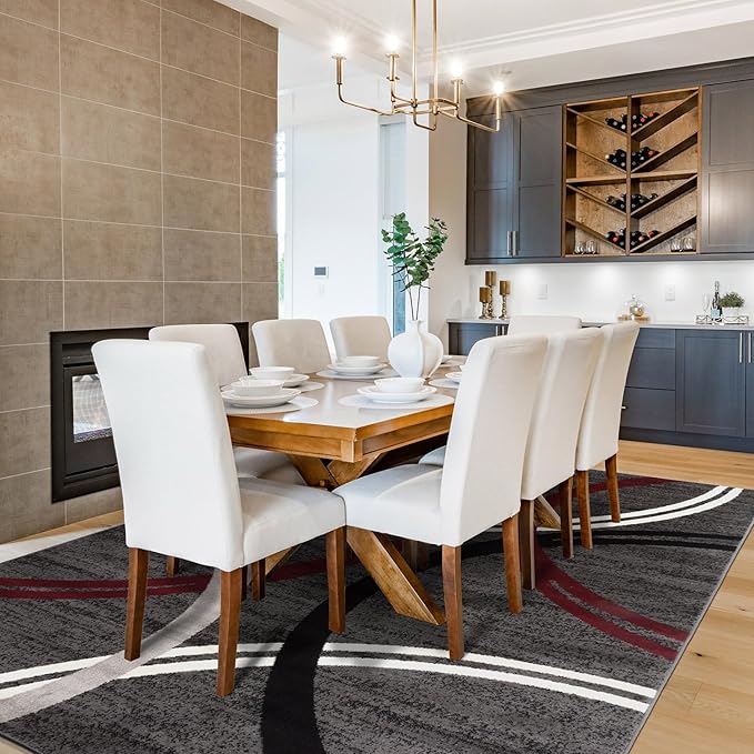 - Dynamic Wavy Circles Design: The rug boasts an artistic pattern with fluid wavy circles, available in blue, brown, gray, red, black, and yellow to complement any room's palette.