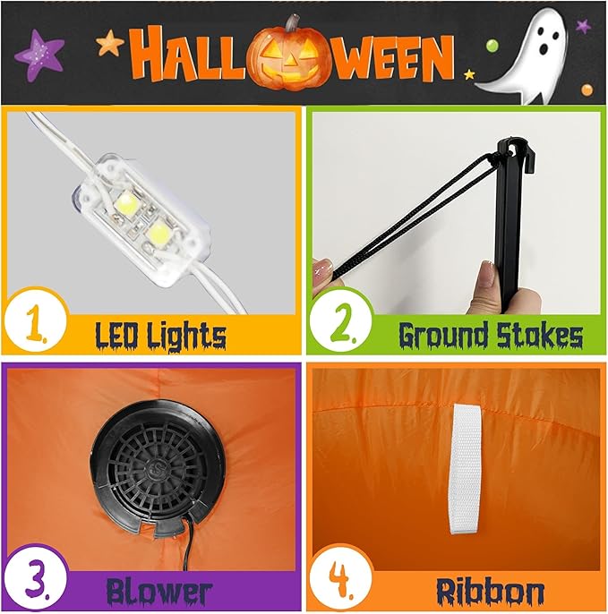 - 🎃【Great for Home & Yard Halloween Decoration】: The inflatable pirate ship inflated size measures (L x W x H): 127*44*91 inches, Inflates easily within seconds. Perfect display for front of your door, garden or yard. The inflatable ship comes with 210T waterproof polyester with 5 led lights and 4 rgb flashing Lights, 1 waterproof blower, 8 ground stakes, 4 fixed ropes, 4 buckles, and a waterproof UL-certified plug.