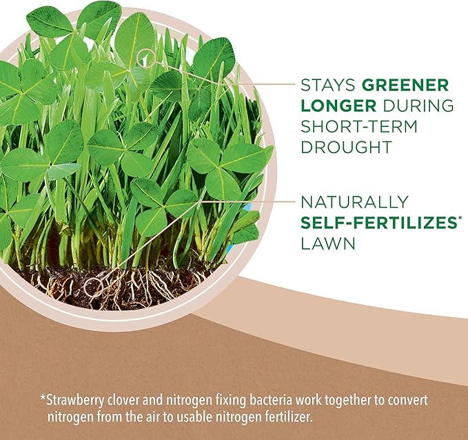 - Naturally self-fertilizes lawn, as Strawberry Clover and nitrogen-fixing bacteria work together to convert nitrogen from the air to usable nitrogen fertilizer