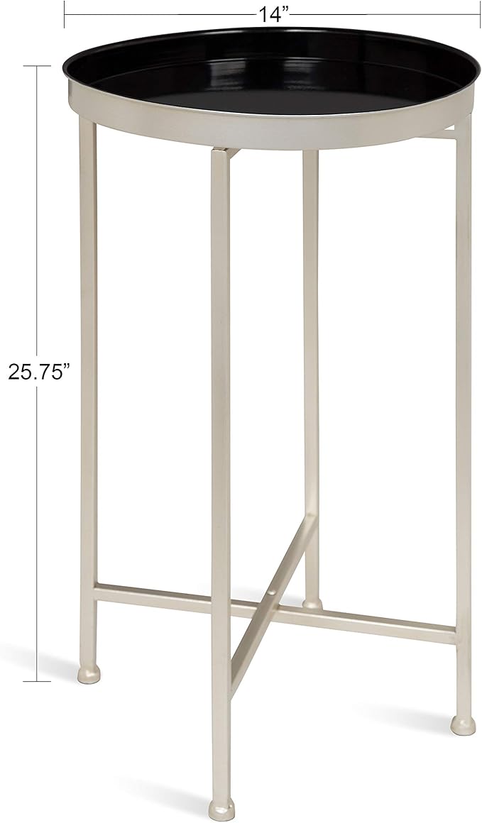 Kate and Laurel Celia Round Metal Foldable Tray Accent Table, 14" x 14" x 25.75", Black and Silver, Modern Minimalist Design and Magnetic Tabletop