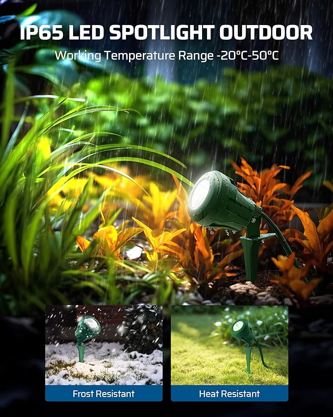- [Waterproof & Durable]Our plug in spotlight outdoor withstand rugged use outdoors, IP65 waterproof, frost and heat resistant protects it from rain, dust, and dirt to ensure long-lasting life; wide working temperature range from 68℉ to122℉