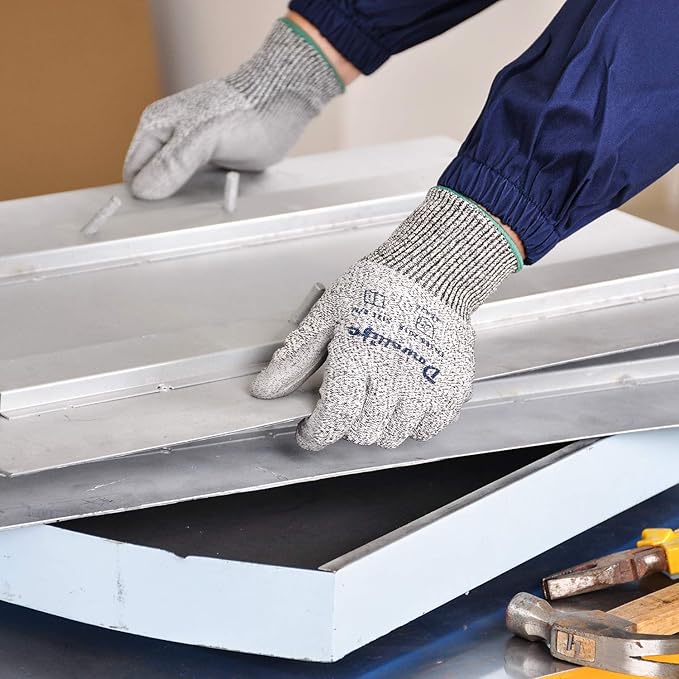 Dowellife Level 5 Cut Resistant Work Gloves for Men & Women, PU Coated Breathable Gardening Gloves, Thin Flexible Firm Grip