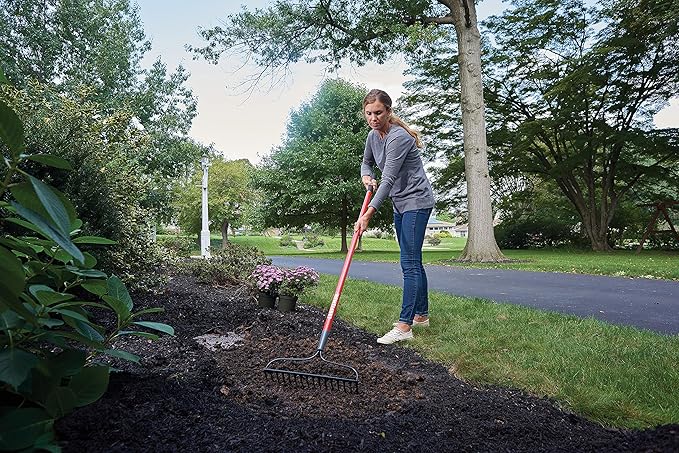 - BOW RAKE: Rake features level bow with 16 welded steel tines to spread materials evenly