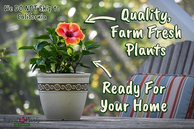 Fiesta Hibiscus Bush - Live Hibiscus Flowering Plant - Tropical Flower Plant - 1 Gallon Planter - Overall Height 10" to 14" - Tropical Plants of Florida (Plant Only)