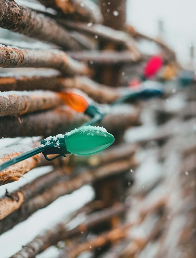 - Charming Christmas Lights: C7 Christmas lights is suitable for outdoor lighting applications. Fits great for home, porch, roof, garden, patio, pathway, balcony, tree, fences. Perfect for holiday, birthday, festival, Christmas party decoration