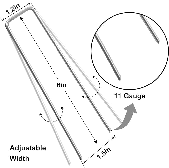 - Easy to Use: The beveled cut at the end of the landscape staples can easily penetrate turf and soil.The width of the yard stake ends is adjustable to meet different requirements.