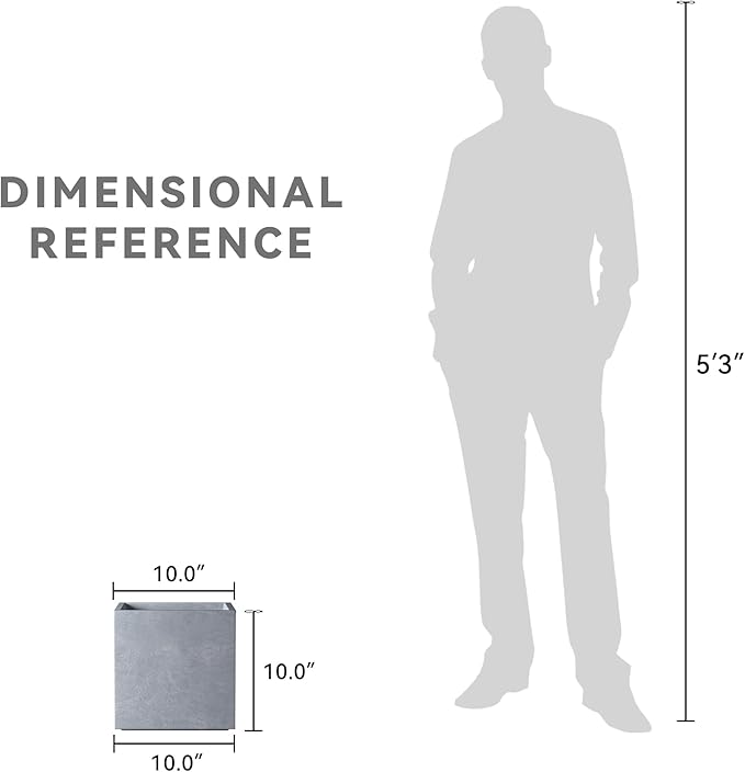 Kante 10 Inch Square Concrete Planter for Outdoor Indoor Home Patio Garden, Large Plant Pot with Drainage Hole and Rubber Plug, Slate Gray