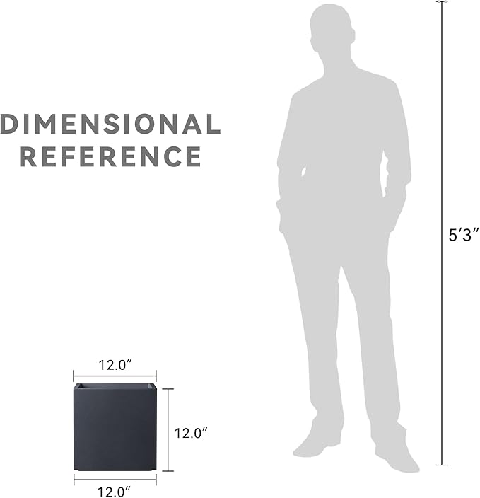 Kante 12 Inch Square Concrete Planter for Outdoor Indoor Home Patio Garden, Large Plant Pot with Drainage Hole and Rubber Plug, Charcoal