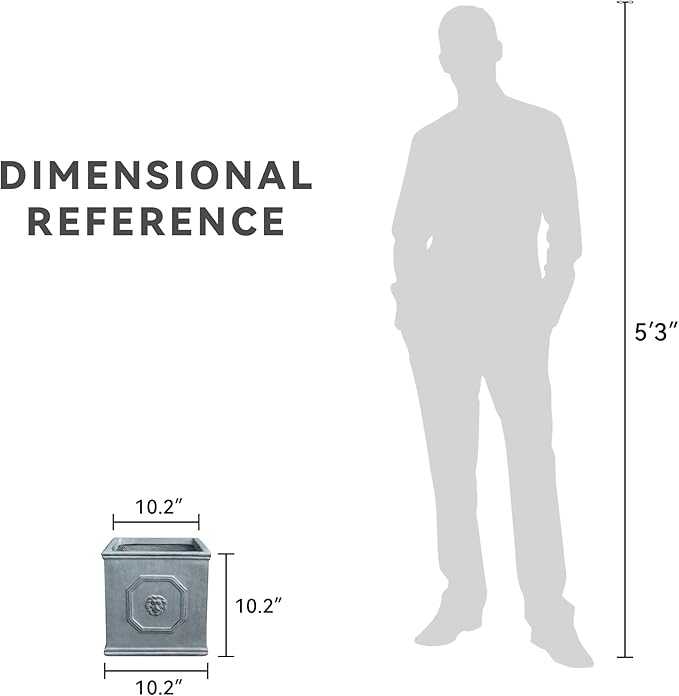 Kante Square Lion Head Concrete Planter, Classic English Style Plant Pot with Drainage Hole and Rubber Plug for Indoor Outdoor Garden Patio Home, 10.2"x10.2"x 10.2" Antique Gray