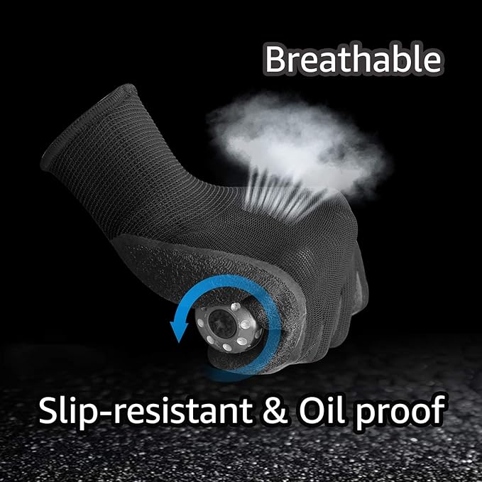 - TEXTURED COATING: Latex/rubber palm and finger crinkle coating, provides Anti-slip, Cut and Puncture resistant and repels light liquids.