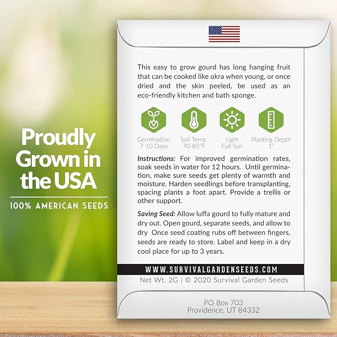 - Small American Family-Owned Business - We’re committed to providing fresh, high-quality, non-GMO heirloom seeds. Our Loofah gourd seeds are open-pollinated, untreated, and tested to ensure the best germination rates.
