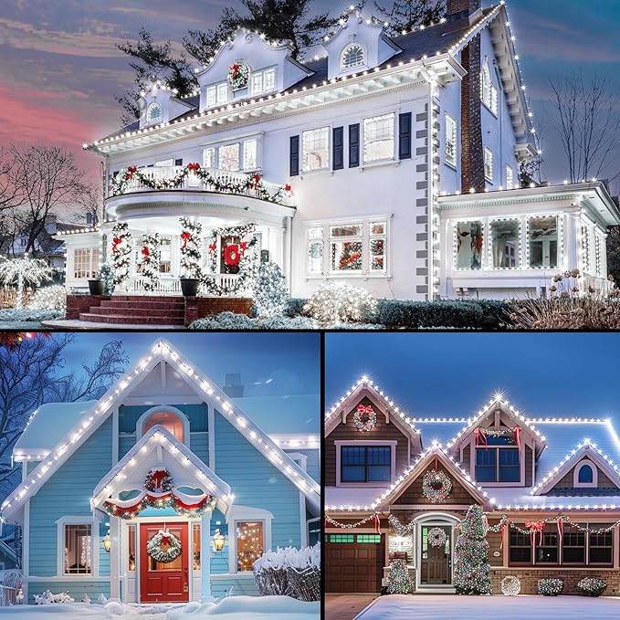 - End-to-End Connectable: Each Christmas light has an end-to-end connector, and you can connect up to 100 sets of these strings end-to-end, freely connecting according to your needs. Hang these fairy lights from your roof, porch, or fence, or wrap them around trees to create a romantic holiday atmosphere and enjoy a happy holiday season with your family.