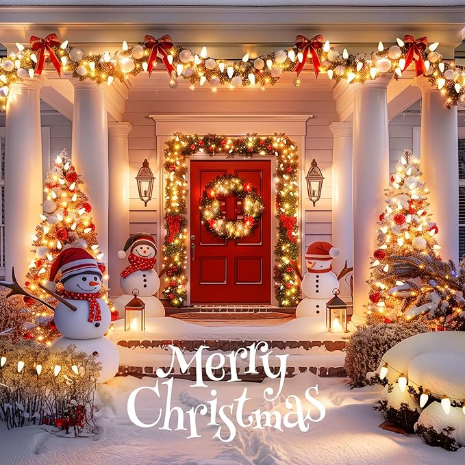 Brightown C9 LED Christmas String Lights, 33ft 50 LED Waterproof Strawberry String Lights, Plug-in Extendable Green Wire Lights String for Outdoor Indoor Patio Party Decoration, (Warm White)