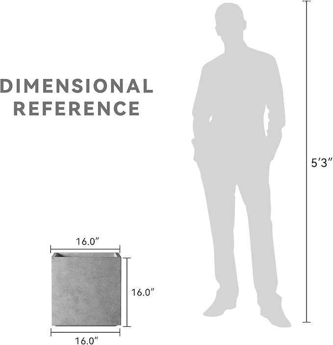 Kante 16 Inch Square Concrete Planter for Outdoor Indoor Home Patio Garden, Large Plant Pot with Drainage Hole and Rubber Plug, Natural Concrete