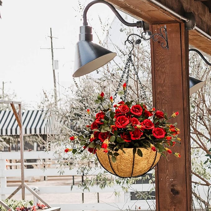 - Easy to Use: Firstly, soak the planter liners completely in water for a while; Secondly, open the hanging basket liners, then place in the basket with black chain; Thirdly, fill with potting soil; Lastly, plant the plants or flowers you like in hanging flower pot. The appearance is stylish and beautiful, 3-chain frame hanging, balanced and strong