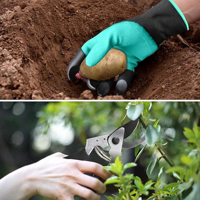 - 1 Pair of Garden Gloves with 4 ABS Claws - Nylon Knitting on the Back of the Hand, Comfortable and Breathable to Keep the Hands Cool and Dry Even in Summer, Easy Solution for Digging Loose Soil and Planting!