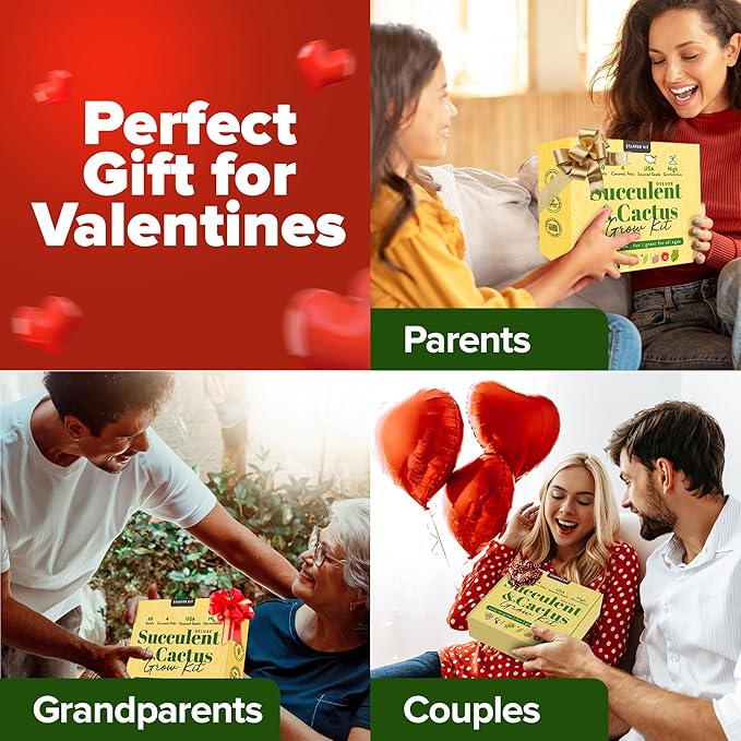 HOME GROWN Deluxe Succulent & Cactus Seed Grow Kit - Indoor Cactus & Succulent Kit w/Cactus Seeds, Potting Soil, Ceramic Succulent Pots, Water Drip Trays, Grow Guide for Plant Lovers