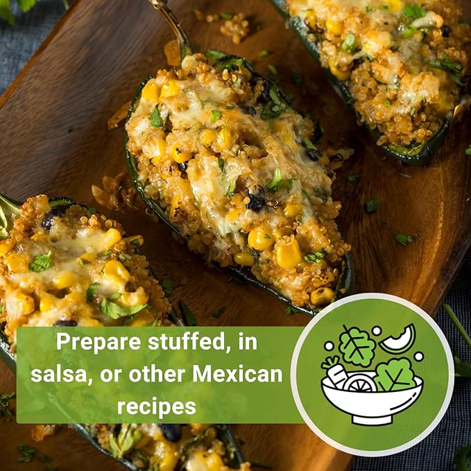- Beautiful - Large premium packet of Poblano Pepper (Capsicum annuum) seeds. 3-6" heart shaped peppers are mildly spicy. They are most often picked at a dark green and stuffed for chile rellenos. Fully ripened, they take a rust red color. Dried poblanos are called ancho chiles and are ground for flavorful chile powder. Minimum of 300mg per packet (about 50 seeds).