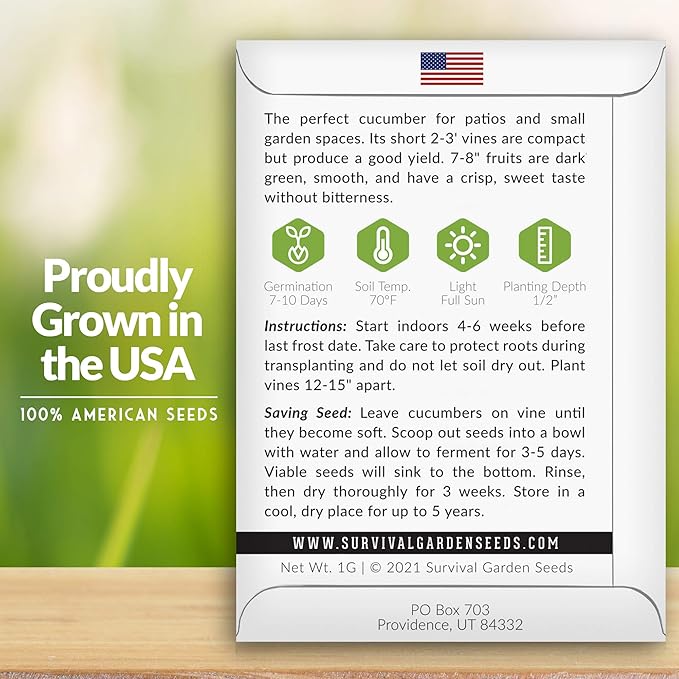 - The Info You Need to Grow - These container garden seeds are packed in a beautiful paper packet with instructions for successful and easy growing in your home garden. Getting started with these Cucumber seeds for planting outdoors is simple for both beginner and experienced gardeners.