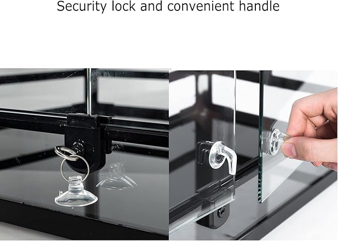 - 【Anti Escape】Security buckle on the lid ensure the tank closed tightly, prevent your reptile amphibian chameleon pets from escaping. And the security lock avoid the doors open accidently by your kids and keep your kids safe.