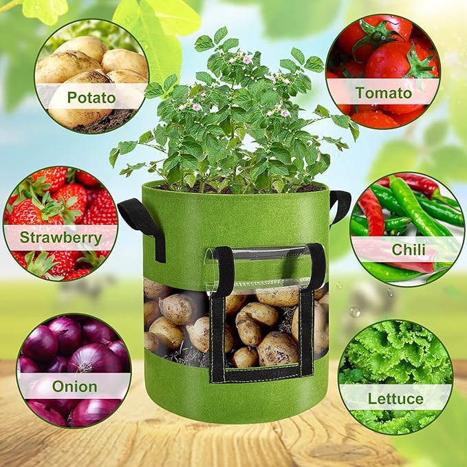 - 【360 Degree Visible Space& Harvest Window</strong>】Our 7 gallon fabric potato grow bags with 2 flaps have a convenient design for using transparent material. So that it’s easy to check the growing process of plant roots without digging clay. When the root fruit harvest, a large enough flap window in the root area will help you get the root fruit without damaging the plant.</p>