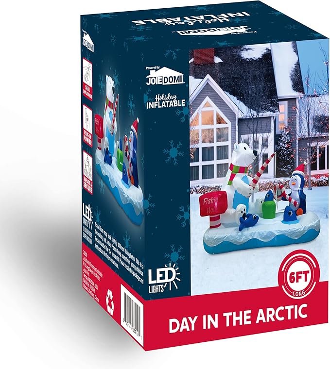 Joiedomi 6 FT Long Christmas Inflatable Penguin & Polar Bear Decoration, Blow Up Yard Decoration Fishing Hole Sign with Build-in LEDs for Christmas Party Indoor Outdoor Yard Garden Lawn Decorations