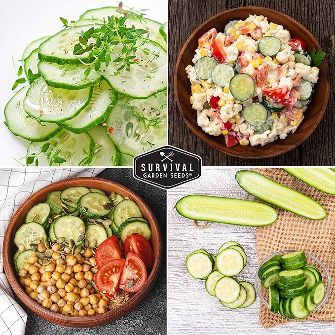 Survival Garden Seeds - Beit Alpha Cucumber Seed for Planting - Pack with Instructions to Plant and Grow Smooth Green Burpless Cucumbers in Your Home Vegetable Garden - Non-GMO Heirloom Variety - 3