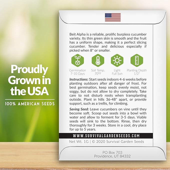 - Grow Now or Later - Plant now or store in your seed vault for future growing seasons. Beit alpha cucumber seed remain viable for years if stored in a cool dry location. Each packet has instructions for saving seeds so you can perpetuate your harvest and share with others.