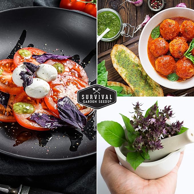Survival Garden Seeds - 3 Pack Thai Basil Seed for Planting - Seed Packet with Instructions to Plant & Grow Asian Basil Indoors or Outdoors in Your Home Vegetable Garden - Non-GMO Heirloom Variety