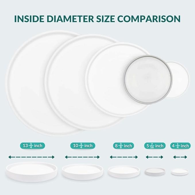 - 2 PACK: includes two 6 inch matte white plant drainage trays. This has a 5 7⁄16" inside diameter measurement.