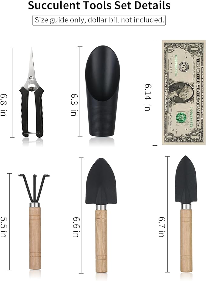 - [SATISFACTION GUARANTEE] Succulent tools set is good helper for your small and delicate projects gardening.Our customer rule number 1 :customer is always right!We are committed to providing all customers with high-quality products and the best service, Should you have any questions about the mini garden tools set or after-sale service, please do not hesitate to contact us. We are here for support and advice!