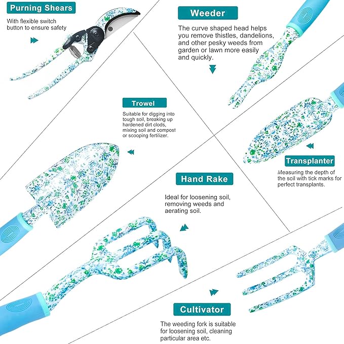 - 【Ideal Gardening Gifts for Women and Parents】This gardening tool kit is the best festival gift for women, grandparents and parents on Christmas, Valentine's Day, Mother's Day