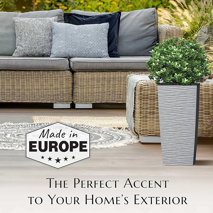 - Modern & Stylish Design – Mueller large planters are designed with matte finishing exterior in soft, wavy shapes, with a ceramic visual display that adds fresh, decorative flair to your space. Perfect for home, office, hotels, restaurants, and other commercial use. Outdoor or Indoor - Ideal addition to any front entrance, poolside patio, or spacious hallway.