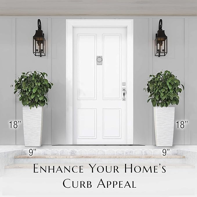 Mueller M-Resin Heavy Duty Tall Planter, Indoor/Outdoor Grande Plant, Tree, Flower Pot, 2-Piece Set, 18”, Modern Design, Built-in Drainage, White