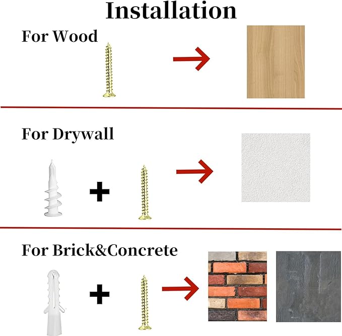 - EASY TO INSTALL- Sets come with all the necessary hardware to install quickly, and securely, Can installed on Brick, Drywall, Wood, and Concrete Walls etc.