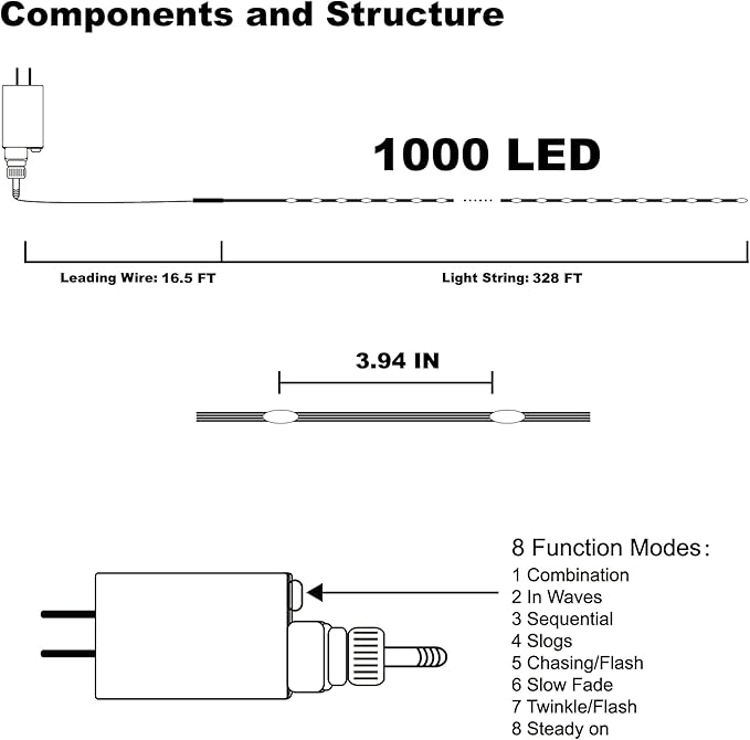 - Christmas Lights: Decorate with our extra long 1000 LED Christmas multicolor fairy string lights with PVC wire, creates a warm festive atmosphere. Total length (include leading line 16.5ft): 344.5ft
