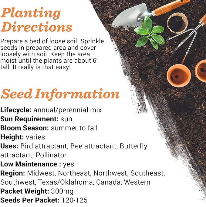 - EASY TO GROW: Our premium home garden flower seed packet gardening kit is developed by gardening experts. The seeds are ready to grow and will bloom from summer to fall, creating a beautiful tribute. These Bentley Seeds are low maintenance and grow into a sun and heat-tolerant variety of flowers. They're perfect for bouquets and a great choice to fill out container gardens.