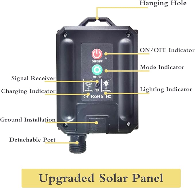 - 【Upgrade Solar Powered Starburst Lights】Solar outdoor firefly lights has been upgraded. There are 2 buttons on the solar panel, namely mode and switch, 3 indicators and solar panel with hook. When you use the solar fairy firework light, the switch-on indicator light shows red, and the light flashes with the mode; when the solar energy is charging, the indicator light shows green. The upgraded solar panels are easier to use.