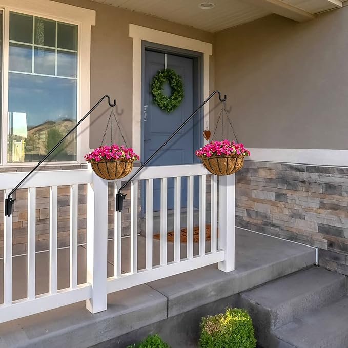 - Premium Quality: Heavy duty steel construction and rust resistant. Weather proof black powder coated. A dark finish stunningly complements anything that hangs from it, adding elegance and beauty to your outdoor living space. Solid bracket and curved rod tip helps securely hold items.