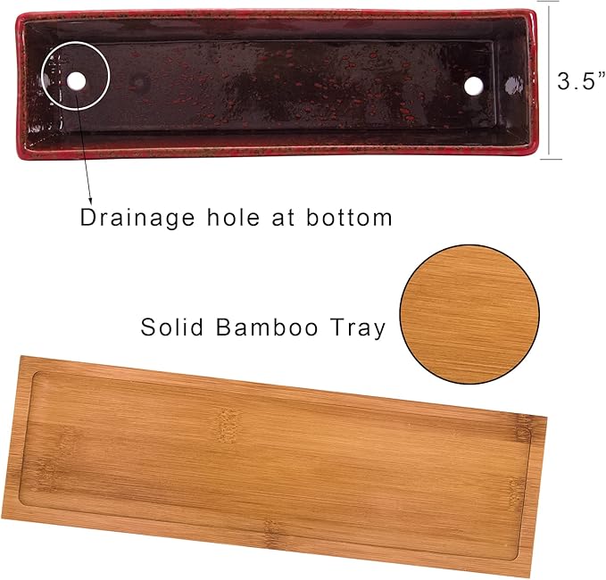 - 【Dimension】The package includes a rectangle succulent planter pot with bamboo tray in perfect size: 12 inch(L)*3.5 inch (W)* 2.7 inch (H). For any quality problems, please feel free to let us know. Artketty will never disappoint any customer.(PLANTS NOT INCLUDED)