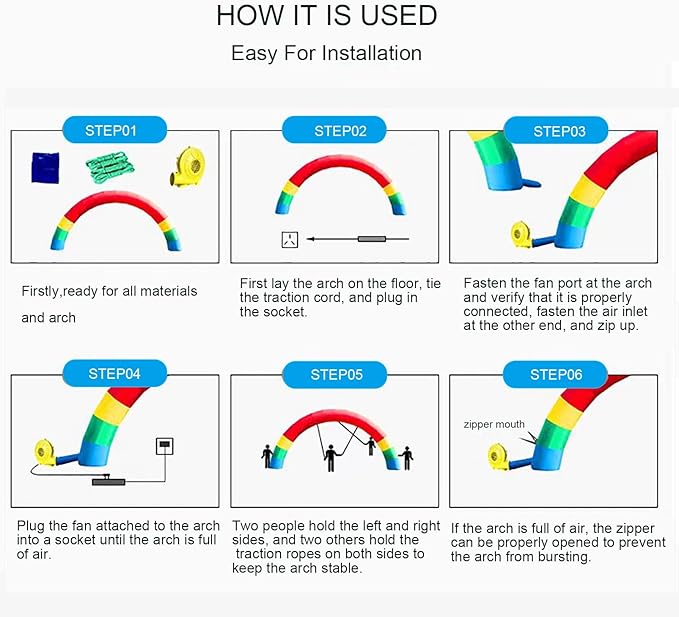 Giant Inflatable Rainbowed Arches Advertising Birthday Party Celebration Garden Decoration-Arch Blow Up Decorative Signs Event Entrance for 250W up General Blower(not Include) Open Size Under 5.5inch