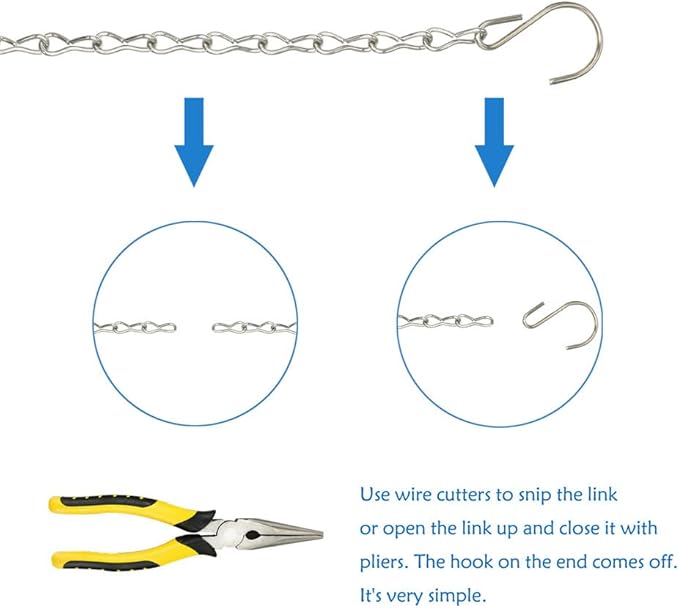 - ✅WIDE APPLICATIONS: The hanging chains are widely applied for hanging bird feeders, bird houses, plant baskets, flower pots, suet baskets, lanterns, wind chimes, billboards, chalkboards, decorative and more. these hanging chains with hooks have endless uses, try to find it