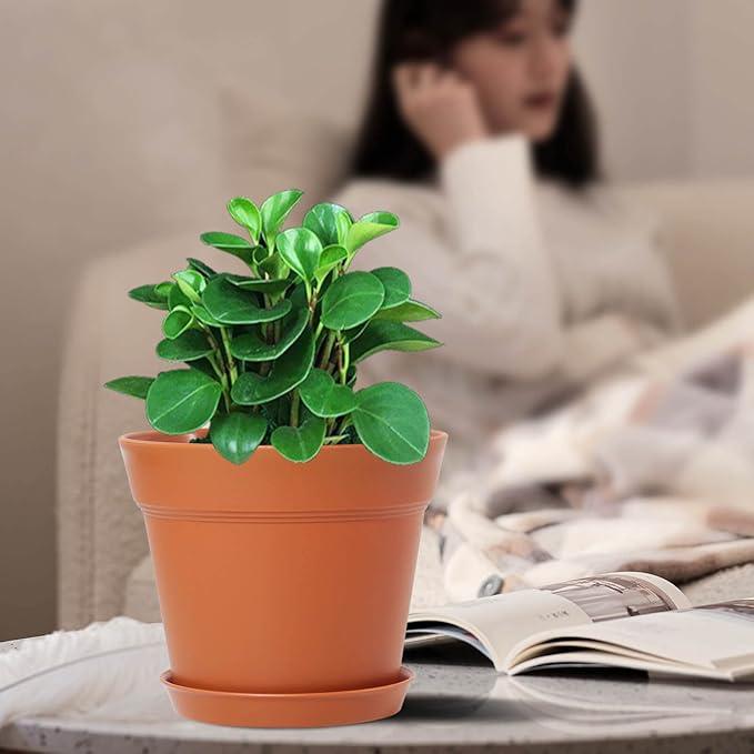 WOUSIWER 16 Pack 6 inch Plastic Planters, Plastic Indoor Planter Flower Pots, Heavy Duty and Stylish 6 Inch Plant Pots for Indoor Plants with Drainage Holes and Tray for Plants, Flowers, Terracotta
