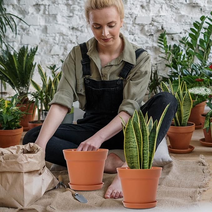 - 【Most repotting for Indoor Plants】 This 6inch Plant pot set includes 16 pieces planting pots and 16 pieces of the matching trays are great for repotting plants, you can grow a variety of plants indoor or outdoors, such as orchid, snake plants, mint, parlor palm, devil’s ivy, cactus, aloe