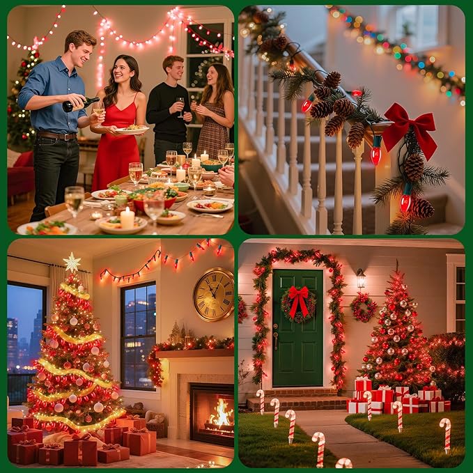 - 【𝐖𝐢𝐝𝐞𝐥𝐲 𝐔𝐬𝐞𝐝 𝐢𝐧 𝐒𝐜𝐞𝐧𝐚𝐫𝐢𝐨𝐬】 Christmas lights outdoor is perfect decoration for indoor and outdoor, Christmas tree, festival, patio, gazebo, flower stand or special events, creating a relaxing and romantic atmosphere.