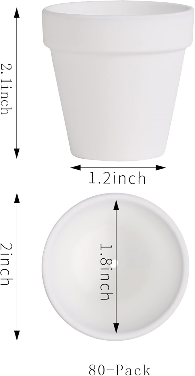 - Packaging of 80 white clay pots: 80 miniature clay pots are made of clay and used for tiny succulents and other small plant species.These small pots don't have a glaze on them, so they can breath like regular colored terra cotta.